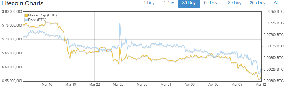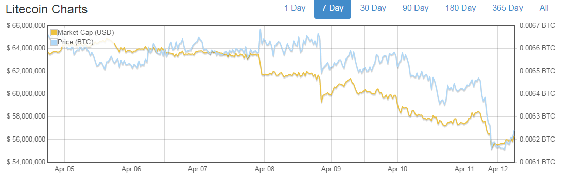 Litecoin, another altoin that all cryptocurrency users are familiar with, is down by almost 15% this week. Litecoin’s volume remained relatively stable throughout the week.