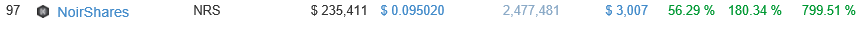While volume is low(and most likely market manipulation), especially when compared to bigger altcoins like Ripple and Litecoin, Noirshare is just one of the many examples of the interest returning to Altcoin trading.
