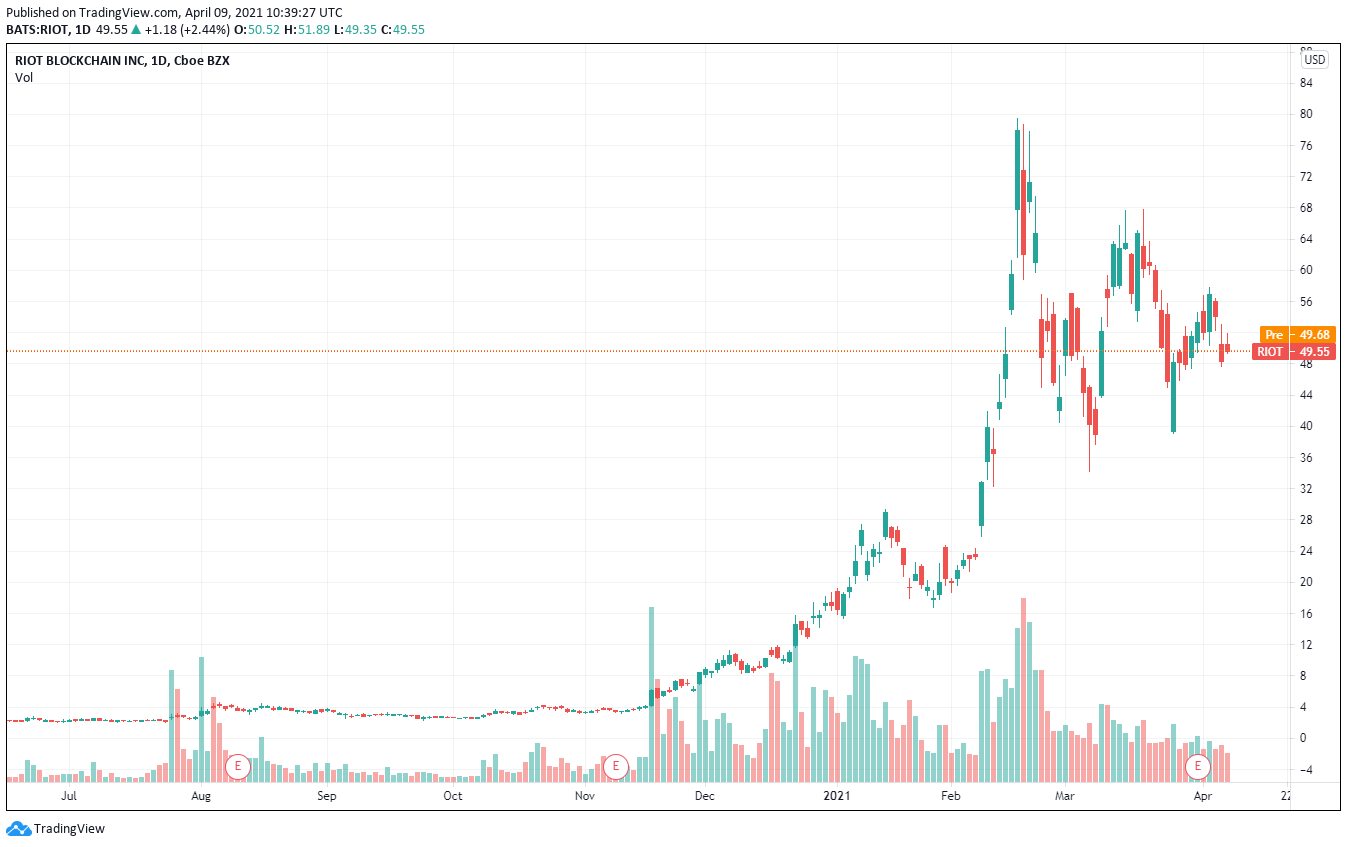 Riot shares (NASDAQ: RIOT) traded at $49.55 into Thursday’s market close — rising 2.44% from recent catalysts.