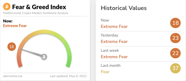 The Bitcoin Fear and Greed Index (BFGI) has once again reached the “extreme fear” level, as the price of cryptocurrencies continues to decline.