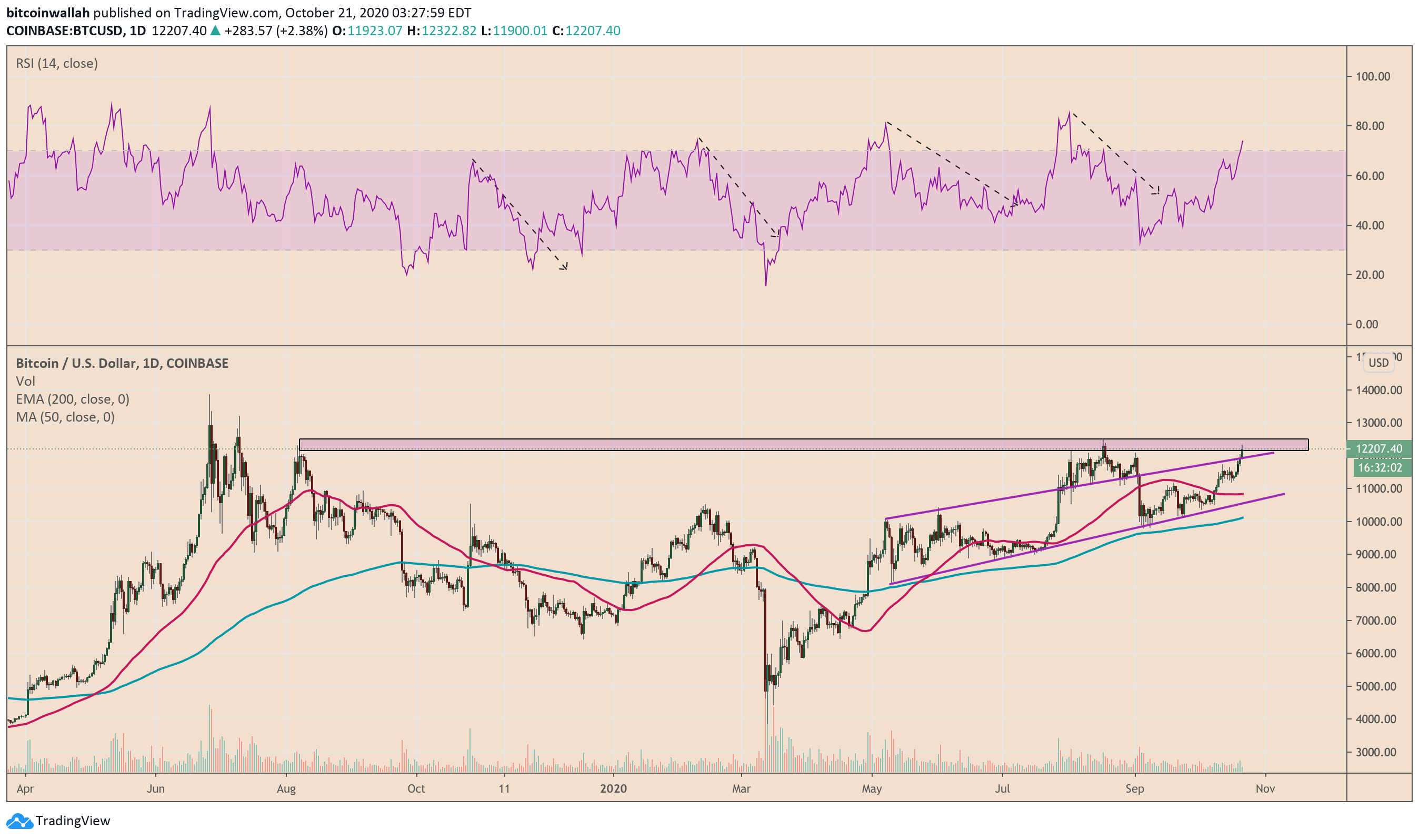 Some analysts expected the Bitcoin price to climb further upwards despite its overbought status. A pseudonymous one expected BTC/USD to march towards $15,000, almost a thousand dollars above its 2019 high.