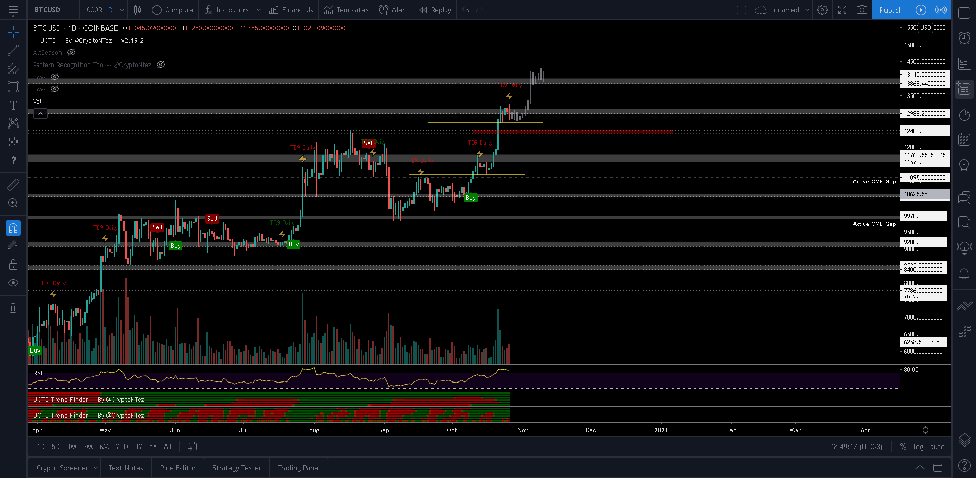 “Structure [is] similar to mid-October where it will range a little more around 13k (yellow trendline should hold). After that, I expect continuation to the upside (~14k). A wick into the red area is also something that may happen due to US elections ahead.”