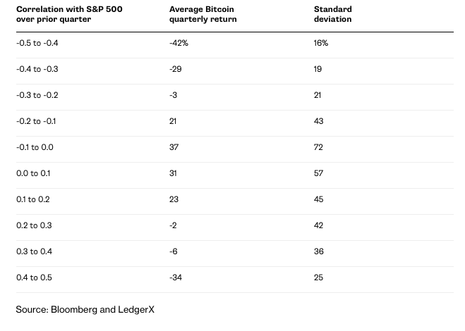 On the other hand, when Bitcoin responds to market fundamentals, regardless of the correlation, the average returns tend to be lower or even negative.