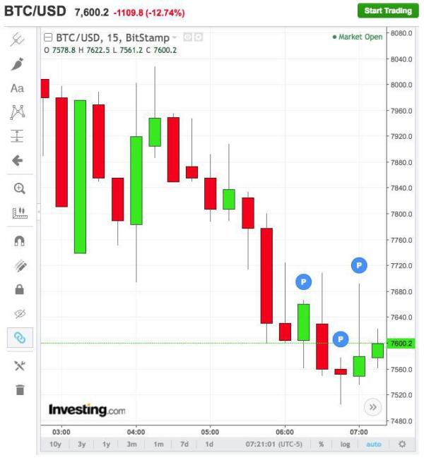 At press time, Bitcoin was in the middle of a new downturn, hitting $7500 on Bitstamp having shed $500 in three hours.