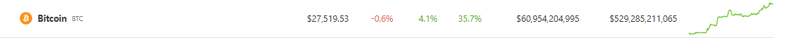 After cryptocurrencies began their climb on Friday, surpassing $27,000 for the second time this week, Bitcoin price has regained nearly all of its losses from 2022.