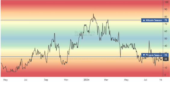 According to the chart below, the last time market dominance almost tipped in favor of altcoins was in January 2024, when it climbed above 75 for only a few days. Nowadays, the scale mostly ranges around 20 to 30, pushing the altcoin season further out of reach. In fact, the index even dipped as low as 12 on July 30, further highlighting the ongoing dominance of Bitcoin.