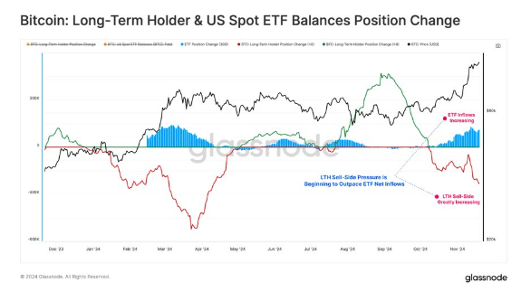 Despite the increase in whale accumulation, on-chain data from Glassnode suggests that long-term holders have upped their profit-taking in tandem. Particularly, over 128,000 BTC has been sold by long-term holders since early October.