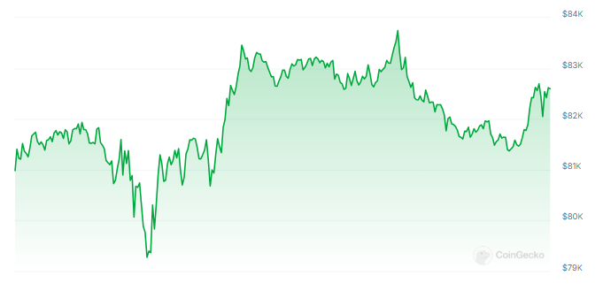 At the time of writing, Bitcoin was trading at $82,120, up 1.4% in the daily frame, but down 6.4% in the last week, data from Coingecko shows.