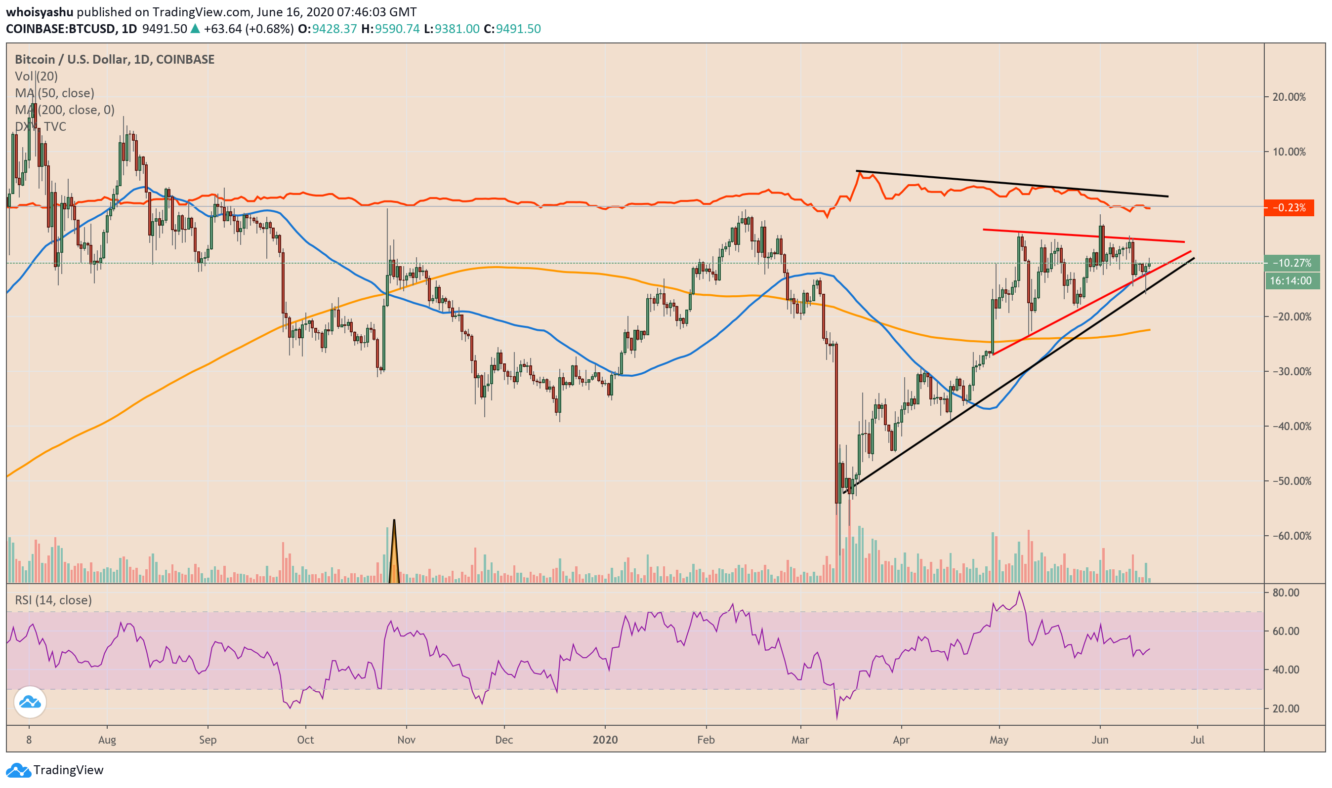 The trend roughly reflects traders’ assessment of the U.S. dollar’s strength against Bitcoin. An uptick in the greenback sees the cryptocurrency shedding its gains. Meanwhile, the dollar’s downside move leads to price growth in Bitcoin.