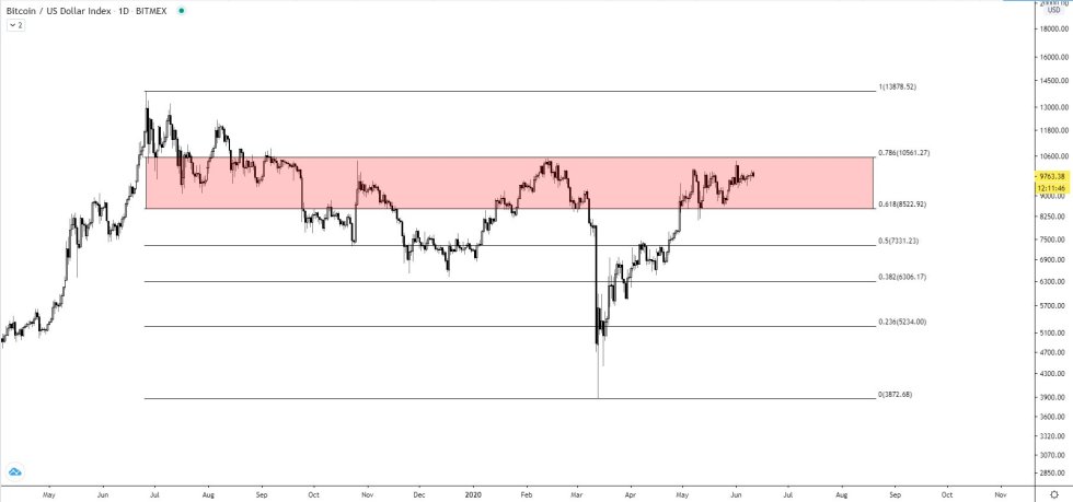 This is around the price level that it has been consolidating at throughout the past several days and weeks, and it has failed to post any sustained breakouts in the time since declining from highs of $10,400.