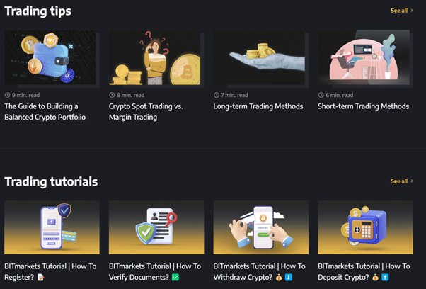 BITmarkets goes beyond trading functionalities by providing a comprehensive educational resource known as BITmarkets Academy. The academy serves as a comprehensive learning platform for both novice and experienced traders. It offers trading tips, tutorials, a cryptopedia, and a crypto glossary. Through these resources, BITmarkets aims to equip users with the knowledge and skills necessary to navigate the cryptocurrency market successfully.