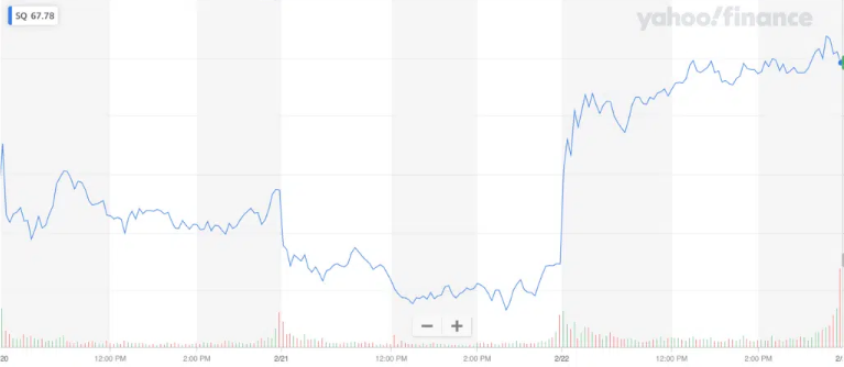 Block's stock price registers a significant increase. Source: Yahoo Finance.