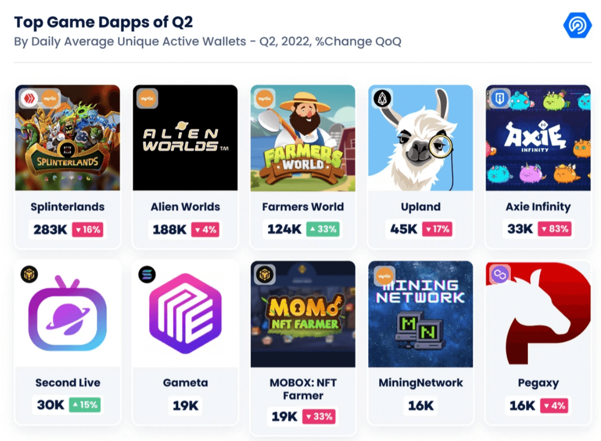 Top 10 Blockchain-based Games of Q2 2022. Source: DappRadar