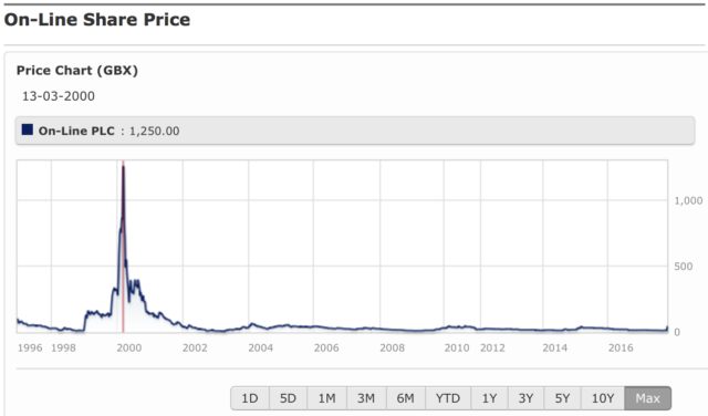 Well, On-line plc certainly remembers it. According to Morningstar, their erstwhile languishing share price peaked at £1,250! I’d suggest probably almost entirely due to being called On-line plc and that domain name.