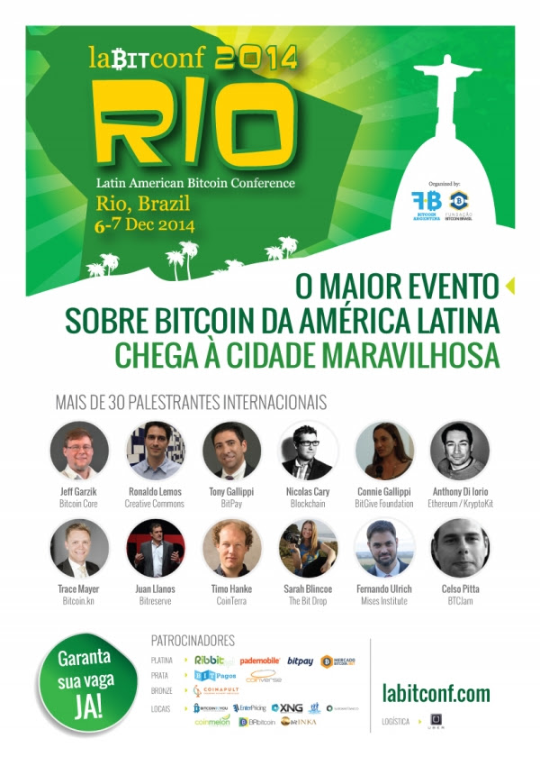 This international event on digital currency will be featuring more than 40 speakers, including Tony Gallippi (BitPay) and Nicolas Cary (BlockChain.info), CEOs of major Bitcoin startups, and Ronaldo Lemos (MIT-MediaLab), the Civil Marco creator and host of one known brazilian TV show (Globo News) and several others important figures in the space.