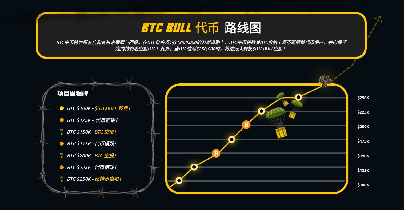 BTC Bull Token 的被動收入機制將在比特幣價格達到 150,000 美元時正式啟動,屆時將向所有 BTCBULL 持有者空投比特幣。