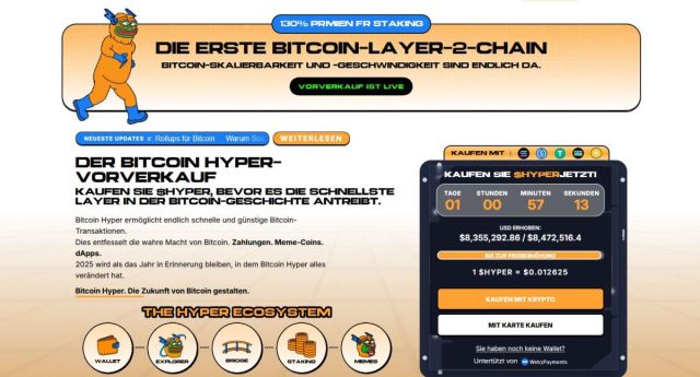 - Bitcoin Hyper ($HYPER): Die weltweit erste Bitcoin-L2-Lösung, die über die Solana Virtual Machine entwickelt wird.