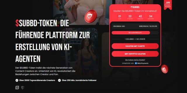 - SUBBD ($SUBBD): Eine Content Creator Plattform, die KI-Technologien mit Blockchain-Konzepten kombiniert.