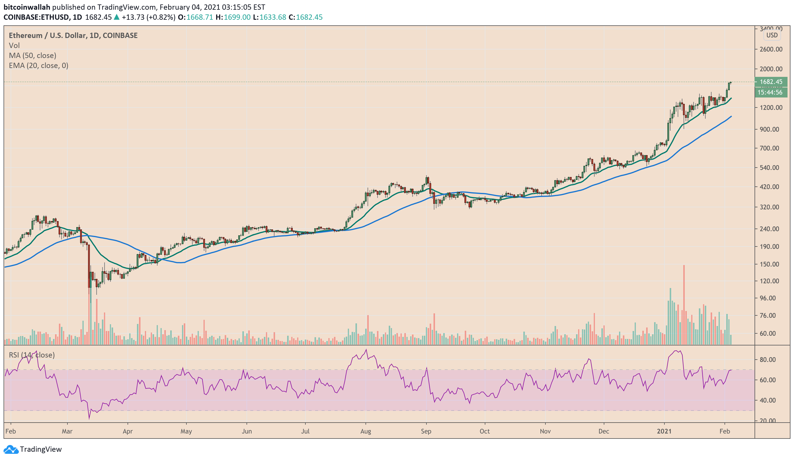 The second-largest cryptocurrency almost hit the $1,700-level for the first time in history after rallying for almost eleven months that saw its price rising by more than 1,750 percent since last March. Its gain appeared as a part of a broader bullish trend in the cryptocurrency market, boosting many, including Bitcoin, AAVE, and UniSwap, to their all-time highs.