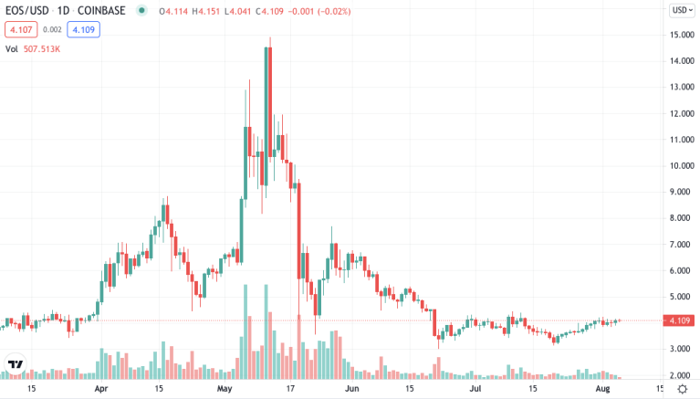 Blanko's Block Party, who has partnered with Burberry, runs on a modified version of the EOS blockchain. | Source: EOS-USD on TradingView.com