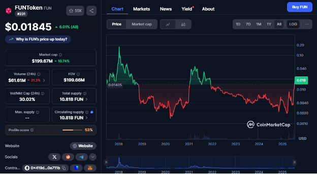 As the Web3 gaming sector matures, one project has steadily moved from speculation to real execution. FUNToken ($FUN), trading around $0.01845 at the time of writing, has laid out a roadmap and deflationary strategy that many believe could support a price target of $0.33 by 2026.