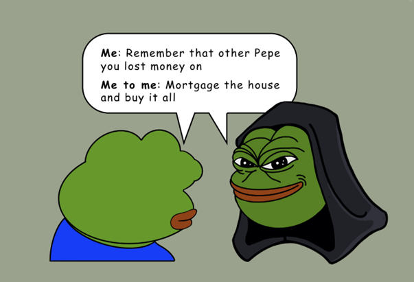 That’s Evil Pepe – the voice in your head you know will get you rich.