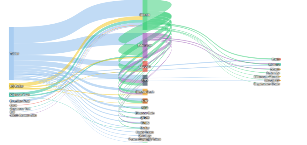 That performance puts China second out of the fiat entry assets, predictably behind the US dollar, while by far the largest inflows come from cryptocurrency stablecoin Tether.