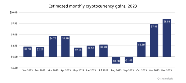 The overall cryptocurrency market experienced a rollercoaster ride in 2023, with earnings remaining steady throughout the year until a dip in August and September.