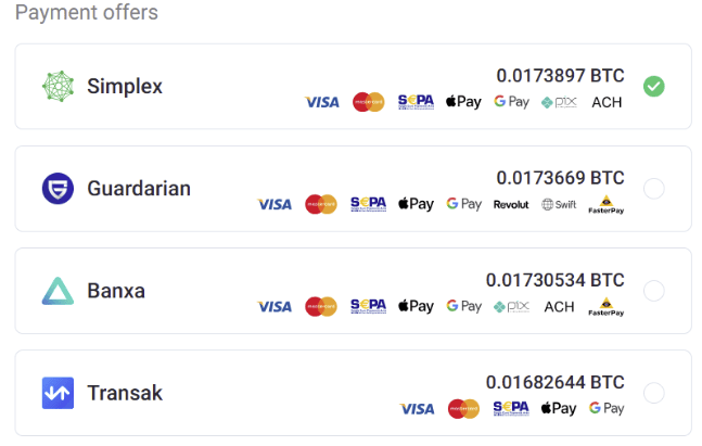 Come mostrato nell’immagine, ChangeNOW ti permette di acquistare criptovalute in modo semplice e sicuro grazie all’integrazione con Simplex, Guardarian, Banxa e Transak. Questi servizi semplificano l’acquisto e la vendita di crypto con valute fiat, offrendo la massima flessibilità nei pagamenti: carta di credito, bonifici bancari e, in alcuni casi, anche PayPal. Un’esperienza di acquisto molto semplice per l’utente.