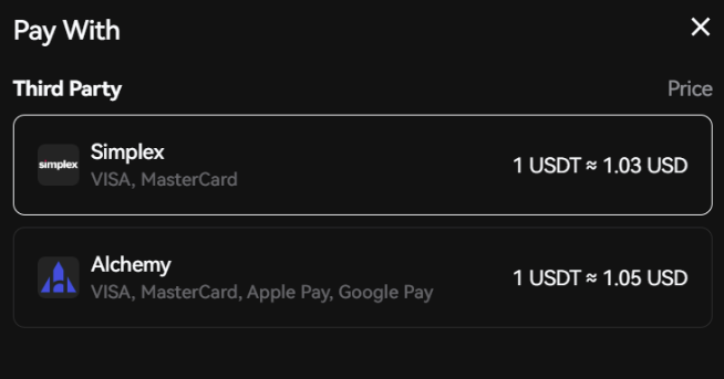Per quanto riguarda i prelievi, BloFin mantiene una politica flessibile: pur imponendo un limite per gli utenti non verificati, questo è particolarmente elevato, consentendo fino a 1 milione di USDT al giorno. Si possono acquistare criptovalute utilizzando Simplex o Alchemy,ovvero fornitori di servizi di pagamento che consente agli utenti di acquistare criptovalute con carta di credito e debito in modo sicuro.