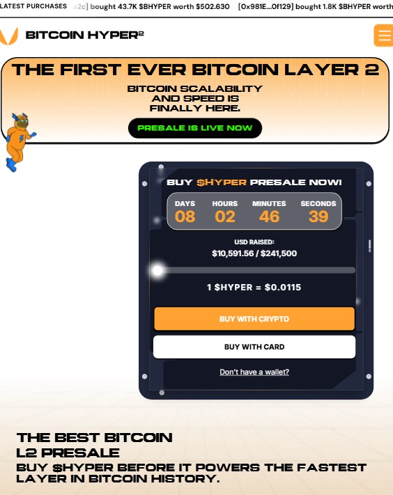 - Bitcoin Hyper ($HYPER) – Con l’aumento della popolarità di Bitcoin, la Layer-2 del progetto potrebbe prendere il volo