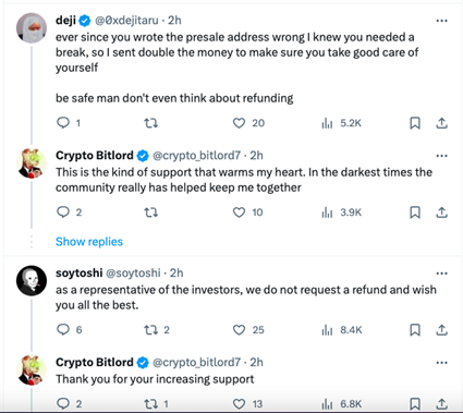 The outpouring of support from the crypto community is unlike anything we’ve ever witnessed, proving once and for all that in this unpredictable digital space, people are always willing to extend a helping hand to those in need – especially when it comes to their own hard-earned funds.