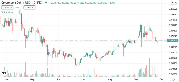 Crypto.com has been an absolute powerhouse in the world of crypto and sports sponsorships this year, surpassing over $400M in sponsorship spend this year alone. The platform has delved in to nearly everything - from cricket, to basketball, to esports - and everything in between. | Source: CRO-USD on TradingView.com