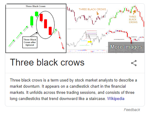 Even though they’re clearly red, this pattern is known often referred to as the three black crows and it usually represents a bearish turn in sentiment.