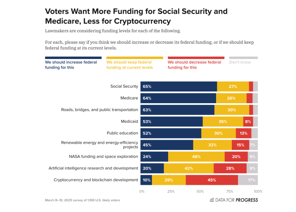 Data for Progress showed that cryptocurrency is among the least concerns of Americans in terms of federal funding.