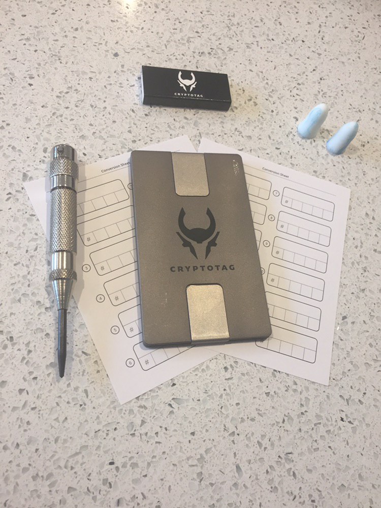 According to the CRYPTOTAG website, the starter kit boasts some substantial tolerances thanks to the space-grade titanium material it’s made from. Not only is it corrosion and pressure resistant, but it can also handle heats of 1,670 degrees centigrade/ 3050 Fahrenheit, and even stop bullets! So keep it close to your heart and it might not just be your crypto that it saves.