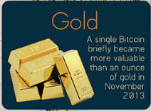 A single Bitcoin briefly became more valuable than an ounce of gold in Novmeber 2013 !