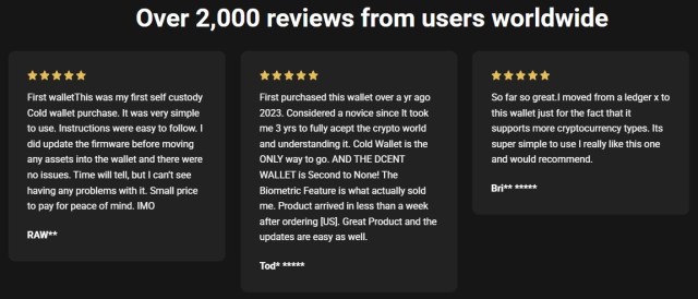 User reviews on the D’CENT site mention people switching from Ledger because D’CENT supports more assets. Another reviewer said they chose D’CENT for the biometric feature after trying Ellipal and Safepal.