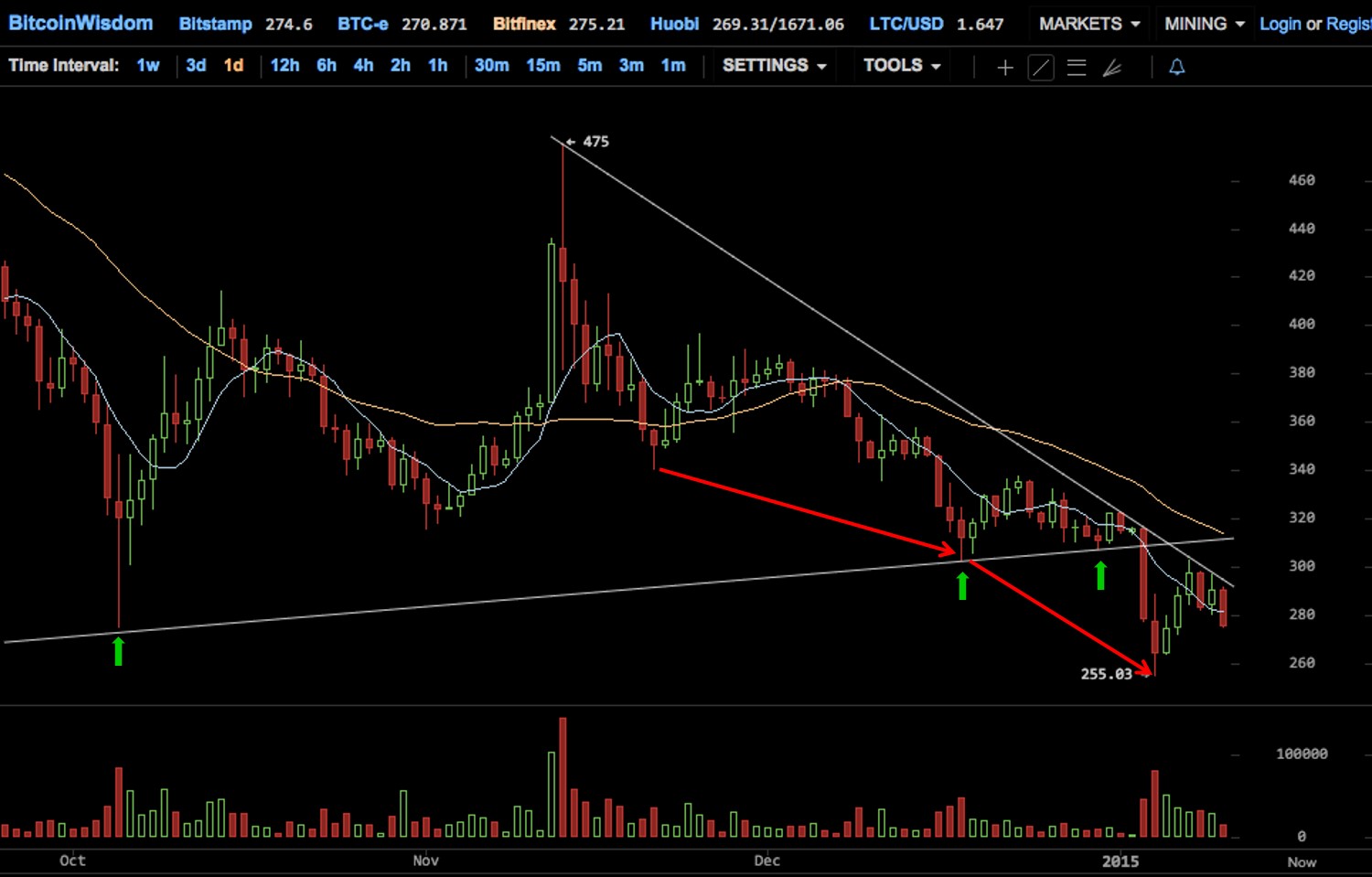 This new year starts off in a very complicated way. The price of Bitcoin is extremely low, and the recent Bitstamp hack (2nd exchange platform in terms of dollar volume) will not boost confidence in crypto currencies. 2014 has been a very difficult year for those who hold Bitcoins for long term reasons, but, nonetheless, numerous and promising evolutions have come to existence. Like many of you, I think that crypto currencies are the future. They are comparable to the Internet in 1995. They will become part of our everyday life and, the more they will get used, the more prices will rise and stabilize. That is why I am not worried about crypto currencies on the long term. For those who want to remain reactive and benefit from the current price volatility, I hope this new series of articles will help you realize gains up to your expectations.