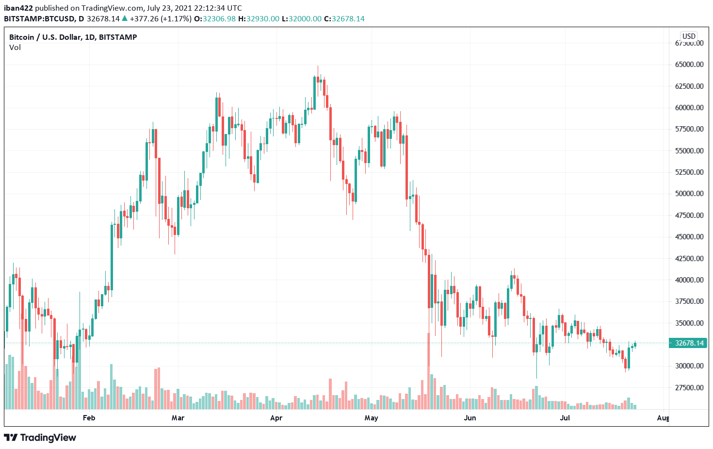 BTC/USD spending another month below $40k. Source: TradingView
