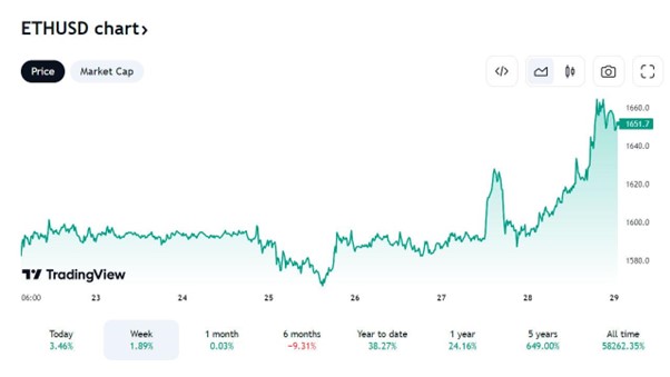 Currently, Ethereum (ETH) price appears to linger in the range of $1,650. This price point is marked with historical significance, with key turning points like crossing the 40-Day Moving Average. On the downside, Ethereum (ETH) support appears formidable, with prices such as $1,612 acting as strong cushions. However, despite these figures, Ethereum (ETH) momentum seems stagnant.