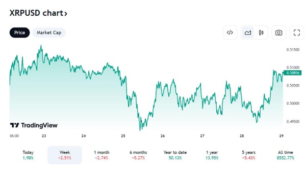 Ripple (XRP), too, seems to be navigating a volatile path, much like Ethereum. Its trading has remained within the confines of $0.4956 and $0.5122, showing a lack of substantial momentum in either direction. The market’s cautious stance has also impacted Ripple (XRP), with the coin’s recent performance echoing this sentiment.