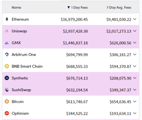 Image shows the daily and weekly revenue of various blockchains. Source: Twitter