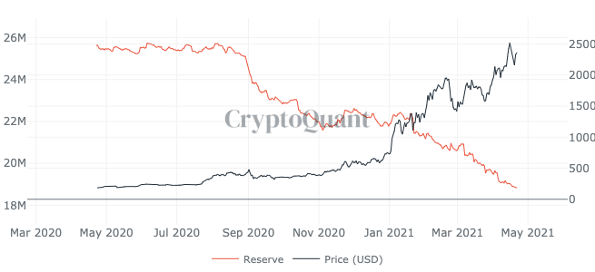 Market analyst Joseph Young shared the correlation above just as ETH/USD reached its record peak of $2,595. That illustrated one crucial fundamental of the Ethereum market: the demand for its native ETH tokens rose exponentially just as its availability on crypto exchanges went for a toss. As a result, the cryptocurrency’s bids climbed.