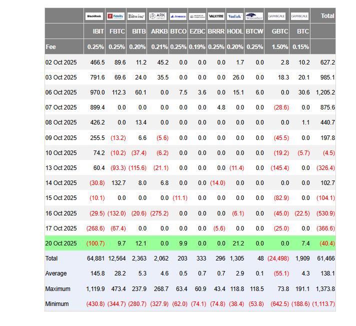 Auch Blackrock ist am Verkaufen, Quelle: https://farside.co.uk/btc/