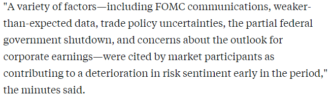 By this passage in the FOMC’s meeting minutes, highlighted by Business Insider, we can see that the Fed is very conscientious of the impact they’re having on financial markets, which is arguably the main reason for their sudden shift in policy.