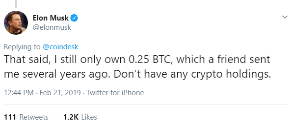 What became clear to me was that Elon wasn’t very interested in talking about it all. Though he did his best to pivot back to Tesla, the interviewer Tasha Keeney did her best to keep him on it. At which point he simply stated some of the obvious pros and cons of digital assets. Responding on twitter just a few moments ago he wrote…
