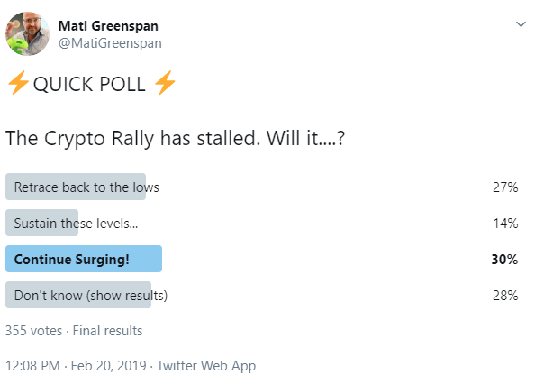 Volumes have tapered off slightly to about $28 billion over the last 24 hours. Still much higher than the $15 billion it was at just two weeks ago. This is a good sign that crypto traders are watching closely at the moment as the battle royale for $4k plays out.