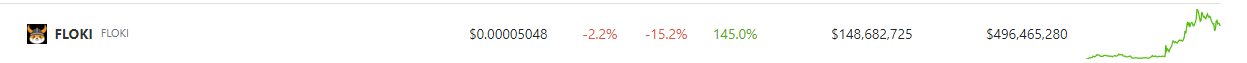 Floki Inu currently occupies the 98th spot in the cryptocurrency list in terms of market cap.