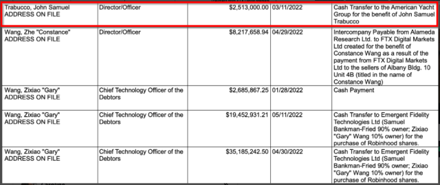 Sam Trabucco, the former co-CEO of Alameda Research, benefited from a $2.51 million transfer from the company to the American Yacht Group in March last year.